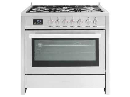 Šířka 90 cm 5 plynových hořáků Integrovaný zapalovač Vnitřní objem trouby 103 l 8 programů trouby