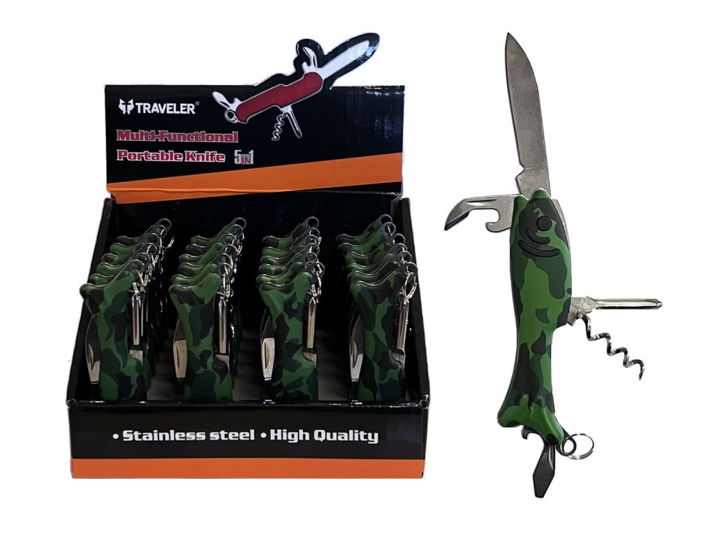 Multifunkční přenosný můž 5v1, BALENÍ = 24ks.Design: ryba maskáč.Provedení: kov s protiskluzovými prvky.Barva: maskáčová.Balení: display box. Uvedená cena je za jeden kus.Doplňkové parametry