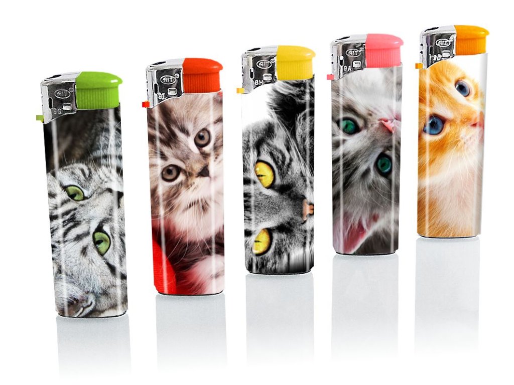 (BAL:50ks)Zapalovač s piezo s barevným potiskem KOČKY. Cena za 1ks.Doplňkové parametry