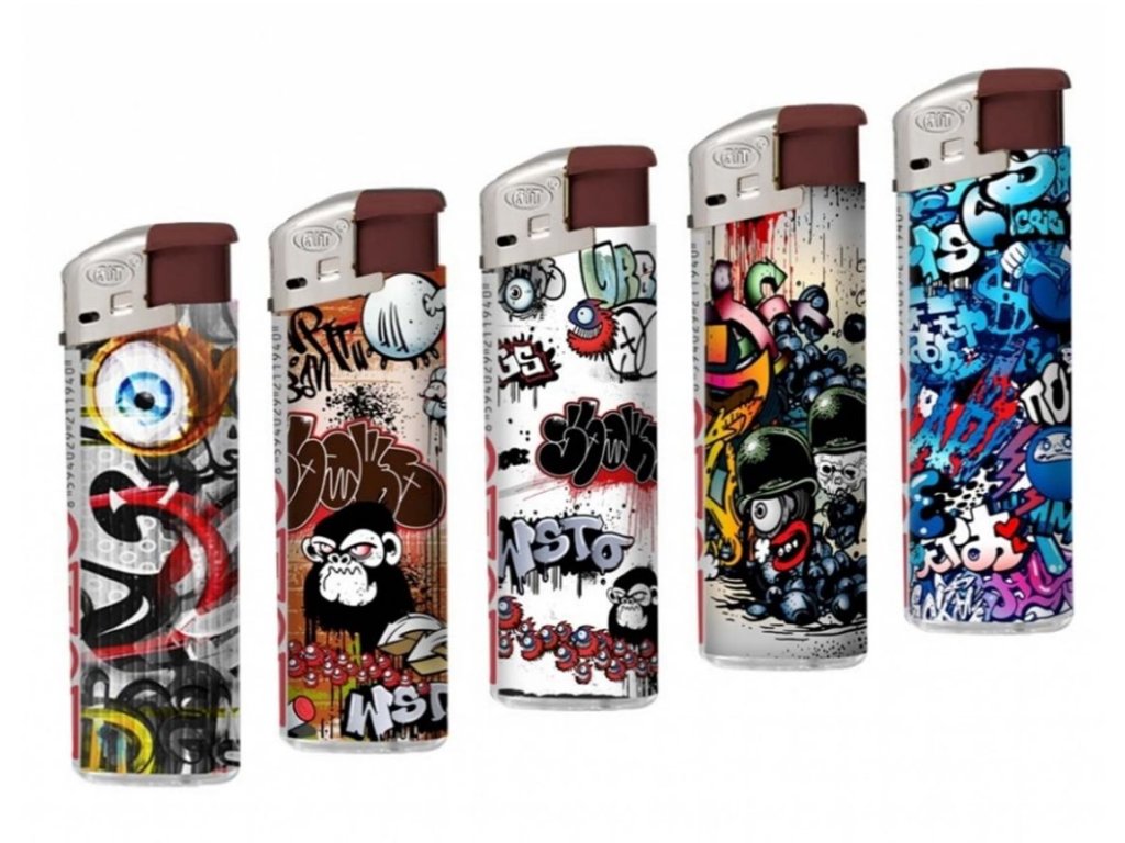 (BAL:50ks) Zapalovač s piezo s barevným potiskem graffiti.Cena za 1ks.Doplňkové parametry