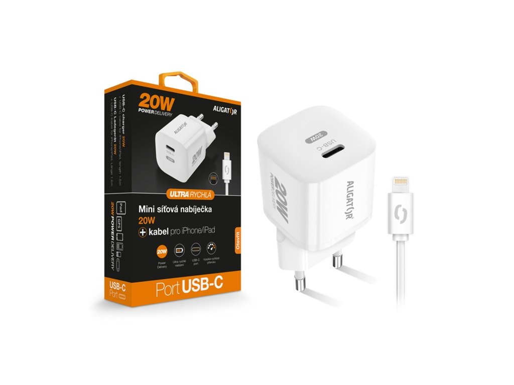 Výkonná miniaturní síťová nabíječka řady „POWER DELIVERY“ v moderním bílém provedení s ultra rychlým USB-C portem o výkonu 20W a USB-C/Lightning kabelem v balení.; Technické parametry:; ? Vstup: AC 100-240V; ? Výstup: DC 5V-3A, 9V-2.22A, 12V-1.67A; ? Power Delivery 20W; ? USB-C/Lightning kabelDoplňkové parametry