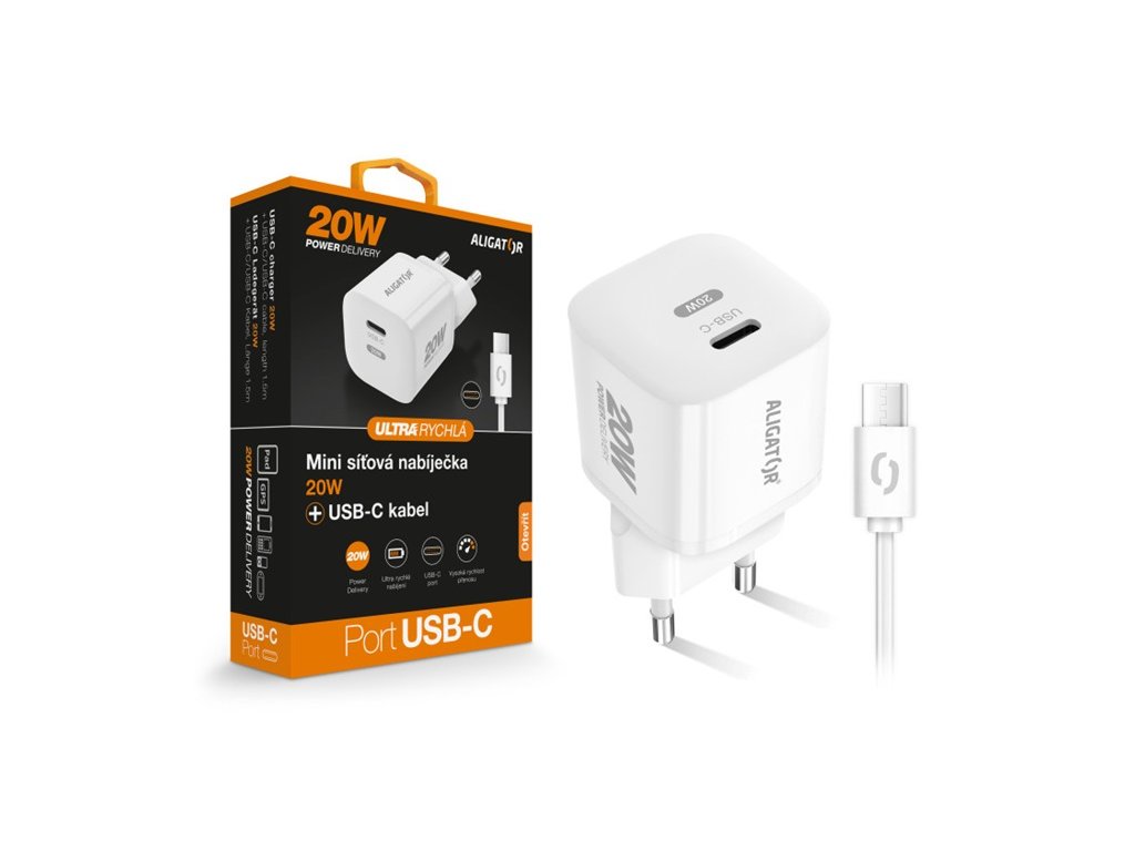 Výkonná miniaturní síťová nabíječka řady „POWER DELIVERY“ v moderním bílém provedení s ultra rychlým USB-C portem o výkonu 20W a USB-C/USB-C kabelem v balení.; Technické parametry:; ? Vstup: AC 100-240V; ? Výstup: DC 5V-3A, 9V-2.22A, 12V-1.67A; ? Power Delivery 20W; ? USB-C/USB-C kabelDoplňkové parametry