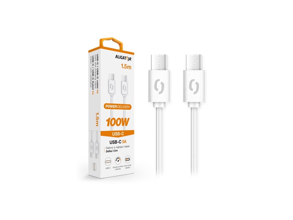 1,5M, ALIGATOR POWER špičkový USB-C/USB-C kabel nejvyšší kvality, o výkonu 100W a možností nabíjení až 5A.Mezi přední vlastnosti patří podpora protokolu Power Delivery s nabíjecím proudem až 5A s možností extra rychlého nabíjení o výkonu 100W.Doplňkové parametry