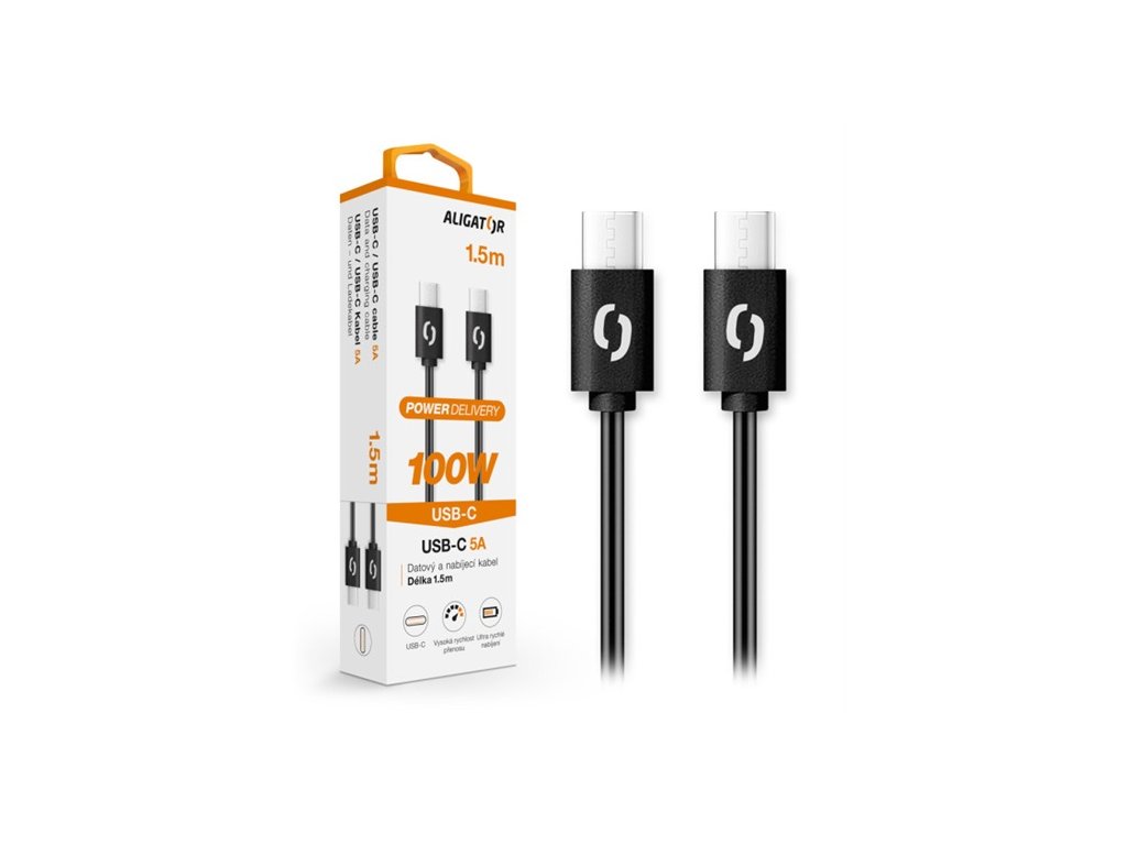 1,5 M , ALIGATOR POWER špičkový USB-C/USB-C kabel nejvyšší kvality, o výkonu 100W a možností nabíjení až 5A.Mezi přední vlastnosti patří podpora protokolu Power Delivery s nabíjecím proudem až 5A s možností extra rychlého nabíjení o výkonu 100W.Doplňkové parametry