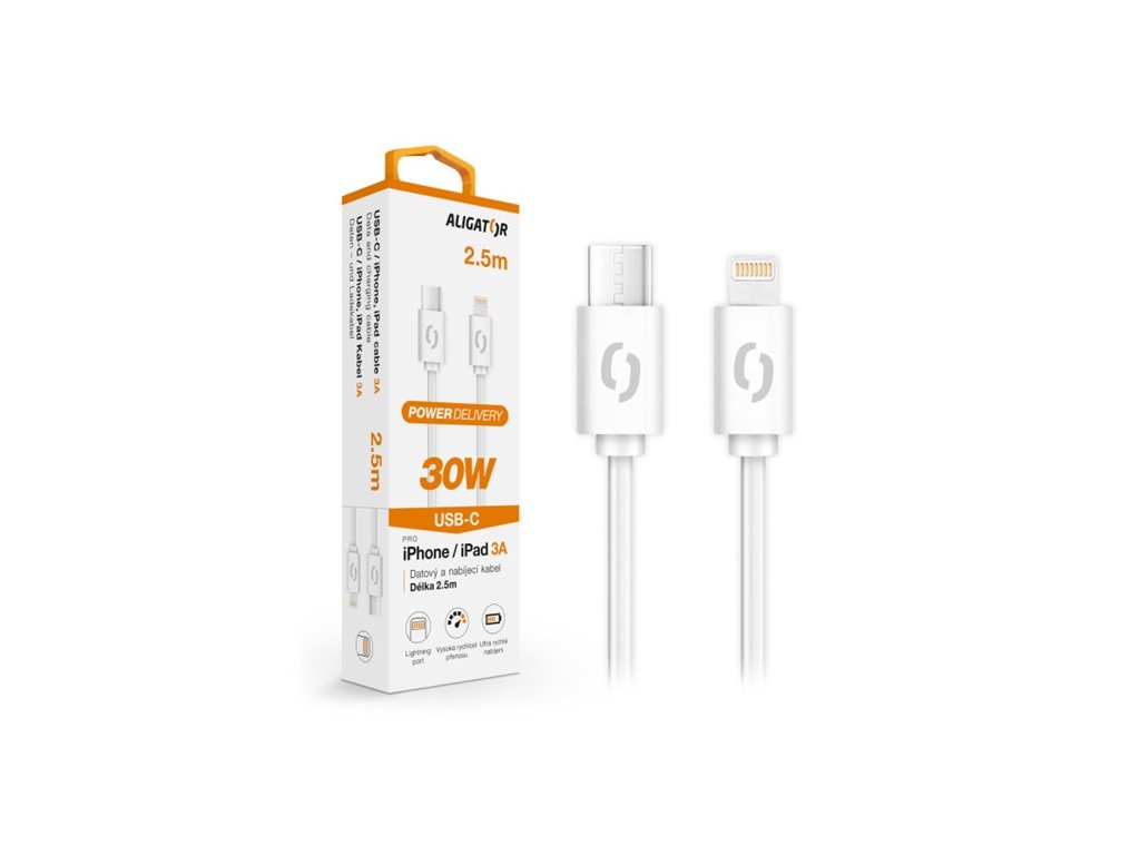 Datový a nabíjecí USB-C /Lightning kabel: Ultra rychlé nabíjení: 3A; Power Delivery až 30W; Kompatibilní s iPhone/iPad s konektorem Lightning; Kompatibilní se zařízeními s konektorem Lightning; Vysoká rychlost přenosu dat; Vysoce kvalitní konektory; Flexibilní a odolný; Délka: 2,5m; Barva: bíláDoplňkové parametry