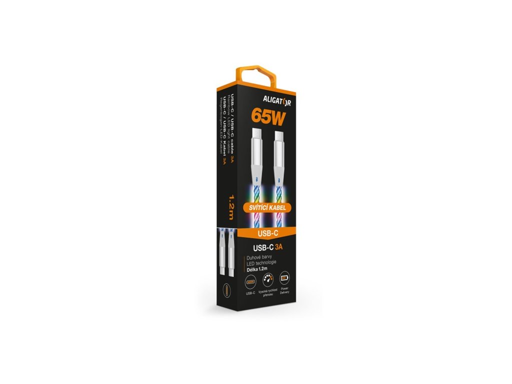 Datový a nabíjecí USB-C /Lightning kabel: LED technologie; Kabel po připojení ihned svítí a mění barvy; Duhové barvy RGB; Ultra rychlé nabíjení: 3A; Power Delivery až 30W; Kompatibilní s iPhone/iPad s konektorem Lightning; Vysoká rychlost přenosu dat; Vysoce kvalitní kovové konektory; Délka: 1,2mDoplňkové parametry