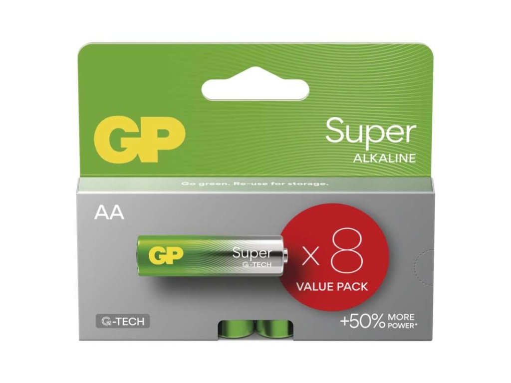 Alkalická baterie GP Super AA (LR6), 8 ks