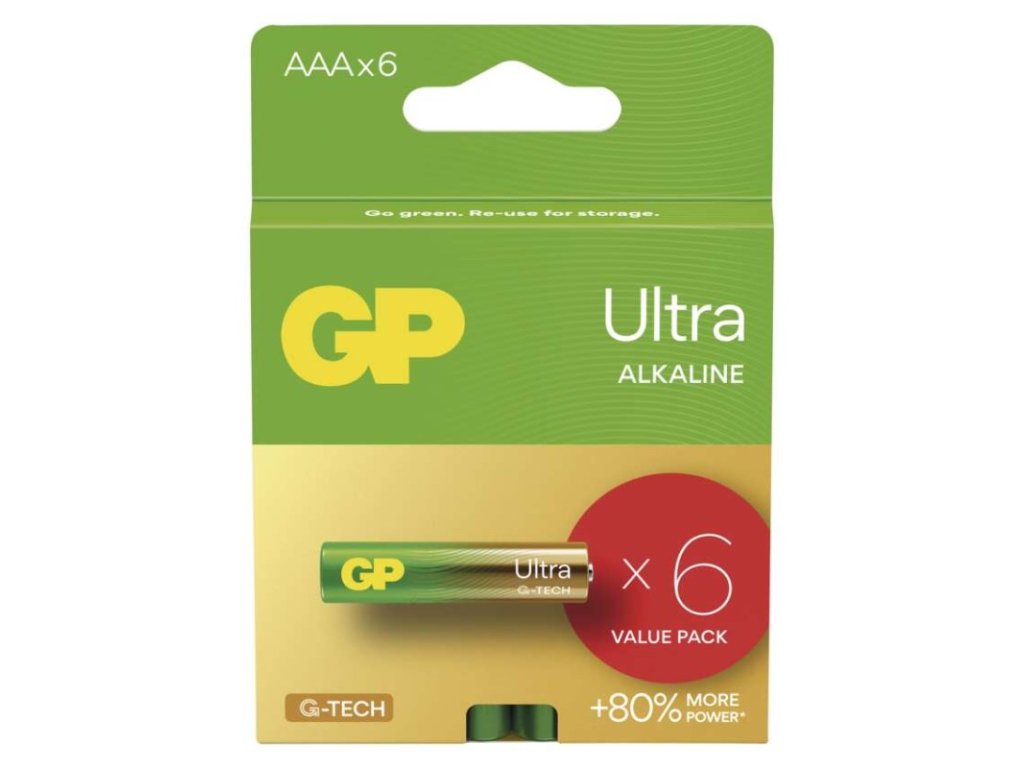 Alkalická baterie GP Ultra AAA (LR03), 6 ks