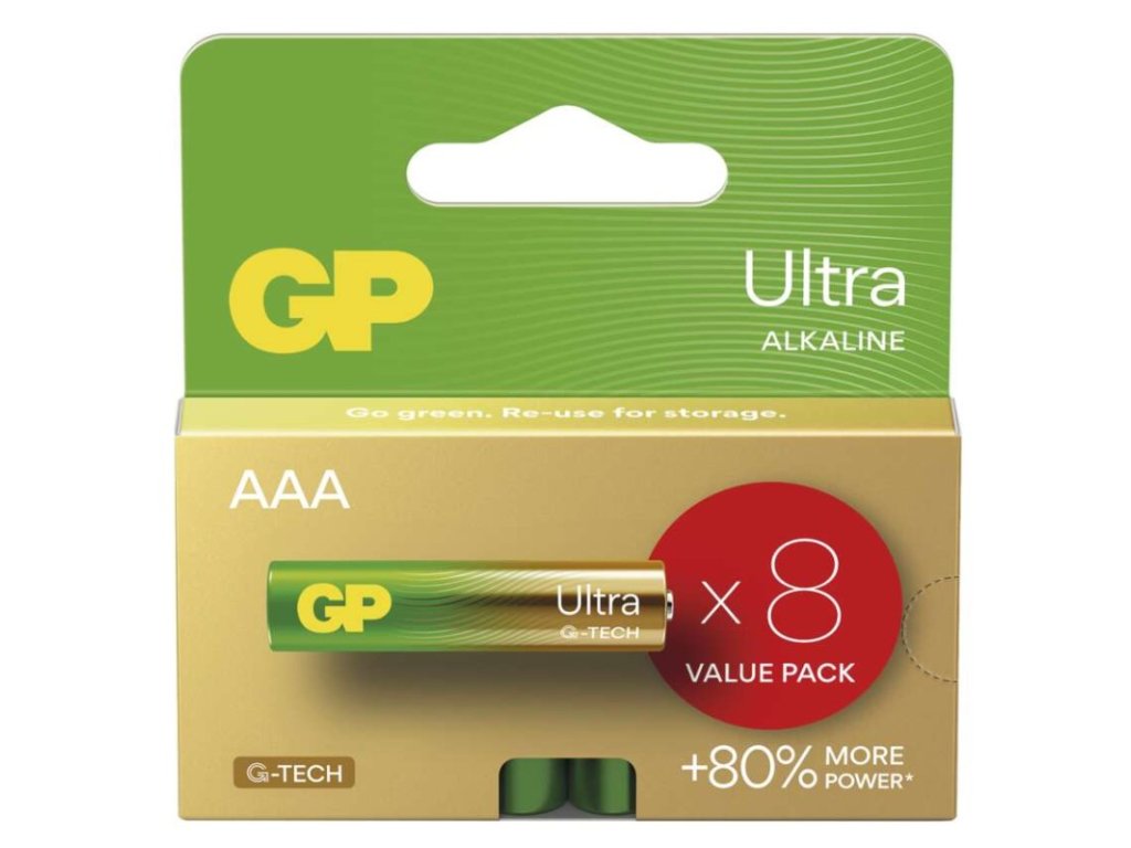 Alkalická baterie GP Ultra AAA (LR03), 8 ks