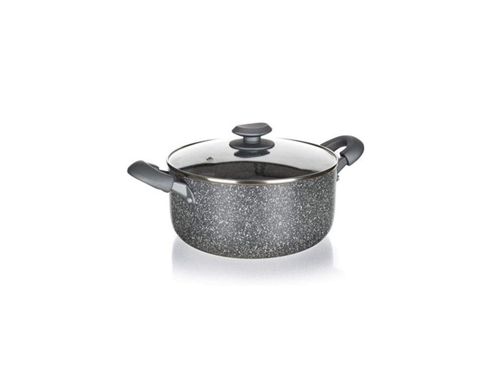 Hrnec s nepřilnavým povrchem GRANITE PR 24 x 11 cm, se skleněnou poklicíHliníkový presovaný kastrol GRANITE 24 x 11 cm s nepřilnavým 2vrstvým povrchem v granitovém dekoru, šedou bakelitovou rukojetí se soft-touch povrchovou úpravou a plně indukčním dnem.Doplňkové parametry