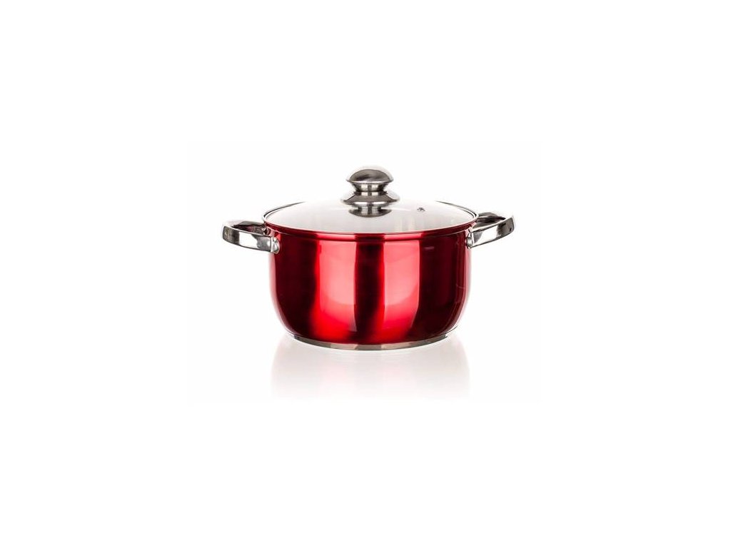 Hrnec nerezový MAESTRO Red 22 cm, 4,3 l, s poklicíNerezový hrnec se skleněnou poklicí MAESTRO Red 4,3 l, rozměry - průměr 22 cm, výška 12,5 cm, materiál - nerez 201 (tělo 0,50 mm, dno - nerez, hliník, indukční protektor), vnější i vnitřní povrchová úprava - lesk, na vnitřní straně měrka objemu. Nerezový knob a držadla (knob přišroubovaný, držadla nýtovaná). Hrnec lze používat na všechny typy varných desek.Doplňkové parametry