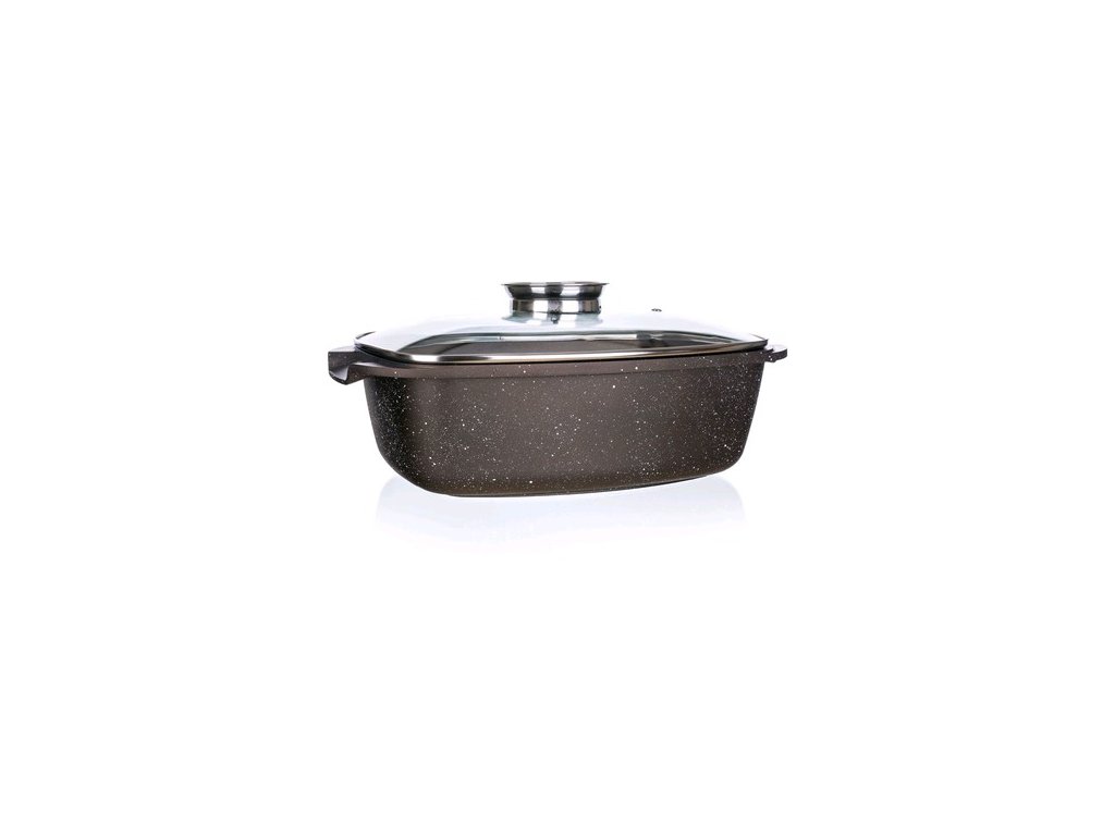 Pekáč s nepřilnavým povrchem PREMIUM Dark Brown 39,5 x 22 x 11 cm, s poklicí s aroma knobemHliníkový litý pekáč se skleněnou termo poklicí a aroma knobem PREMIUM DARK BROWN s nepřilnavým povrchem, rozměr 32 x 20 x 11 cm, hnědý granitový dekor, tloušťka stěny 2,2 mm, plně indukční dno. Nepřilnavý povDoplňkové parametry