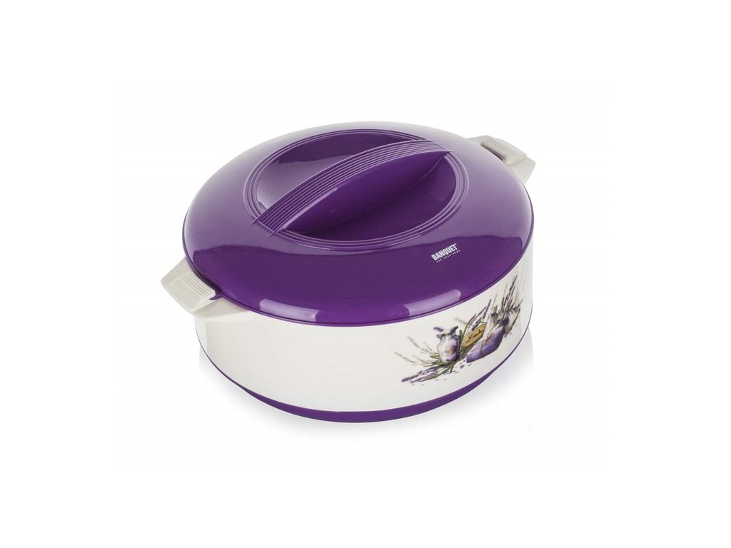 Termohrnec s poklicí LAVENDER 2,5 lTermohrnec LAVENDER 2,5 l s poklicí je praktický pomocník vhodný pro uchovávání a přenášení horkých i studených pokrmů. Termohrnec CULINARIA je dodáván v několika velikostech v dekoru levandule. Termohrnec je vyroben z kvalitního odolného plastu. Vnitřek hrnce tvoří nerezová vložka, výplň mezi stěnami je z PUR pěny pro zachování vynikající izolace při skladování či přenášení potravin. Termohrnec ocení hlavně kuchaři a kuchařky při uskladnění hotových pokrmů před samotným servírováním.Doplňkové parametry