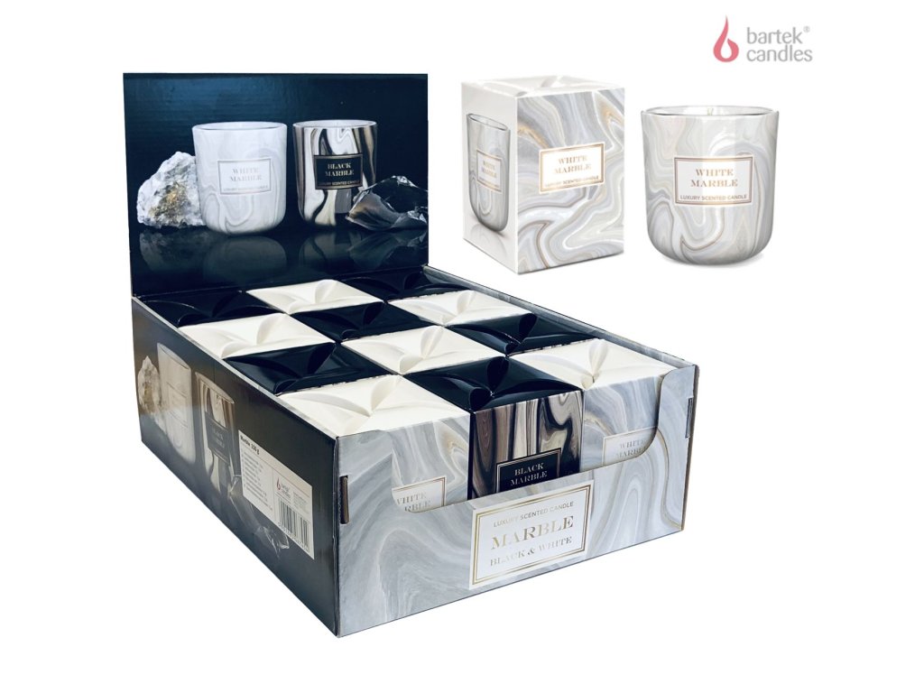 Bartek svíčka vosková ve skle 150g černý a bílý mramor 0096