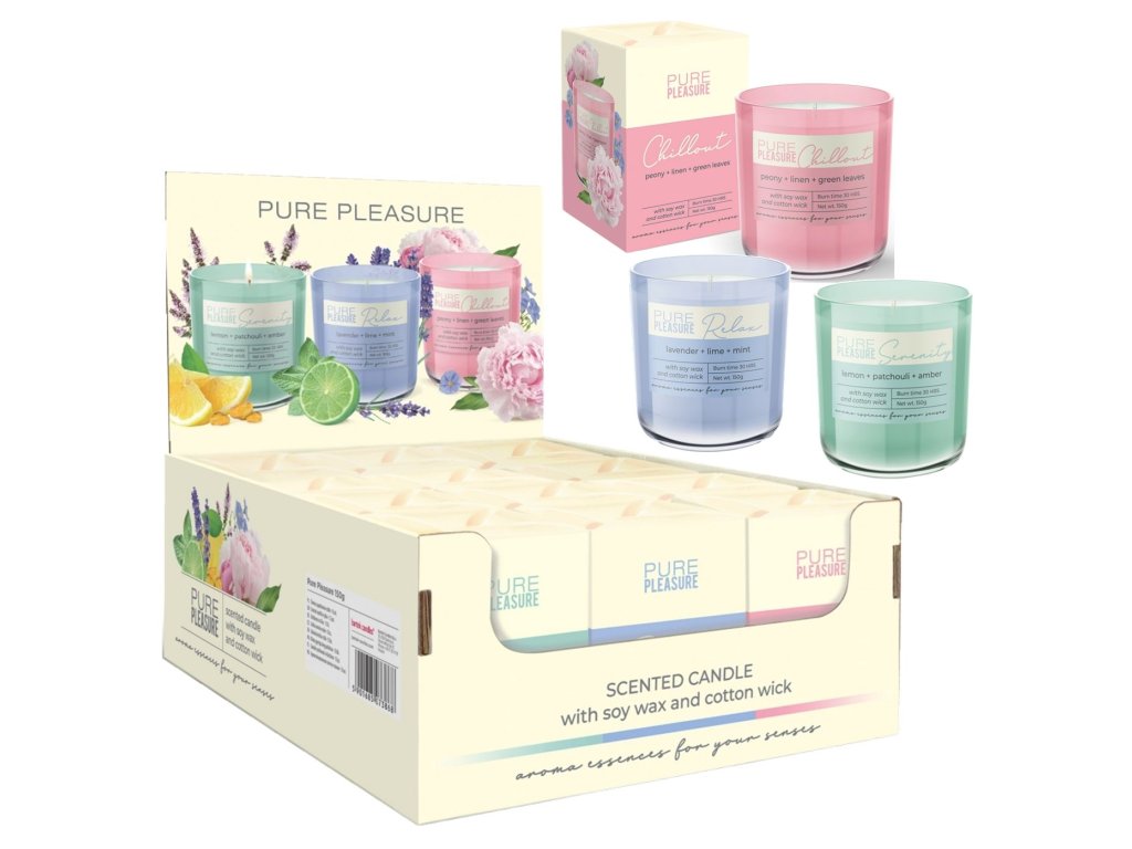 (BAL:12ks) Svíčka s vůní v kónickém skle, čisté potěšení. Motiv: Chillout, Relax, Serenity.¨Vůně: citron s pačuli a jantarem, levandule s limetkou a mátou, pivoňka s lenem a zelenými lístkyBaleno v luxusní dárkové krabičce.Provedení: se sójovým voskem. Rozměr: 8 x 8,5cm.Rozměr boxu: 26 x 34 x 12cm .Doba hoření: 30 hodin.Prodej po 12ks v boxu.Cena za jeden kus.Doplňkové parametry