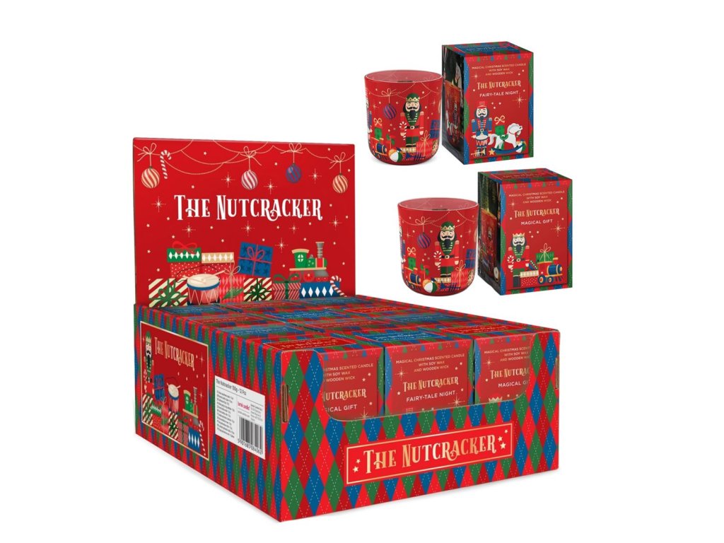 (BAL:12ks) Vánoční svíčka s vůní v kónickém skle, dekor Louskáček. Provedení: se sójovým voskem a dřevěným knotem. Vůně: čerstvě upečené, ještě teplé koblihy posypané cukrem a skořicí. Kořeněná a ovocná vůně, která Vás zavede do pohádkového světa. Design: Fairy Tale Night, Magical Gift. Baleno v dárkové krabičce. Rozměr: 8 x 8,5cm. Rozměr boxu: 26 x 34 x 12cm. Doba hoření: 35 hodin. Prodej po 12ks v boxu. Cena za jeden kus.Doplňkové parametry