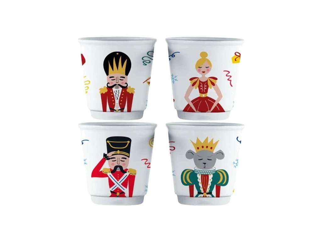 Set čtyř espresso šálků Bialetti v limitované edici Louskáček. Šálky jsou zdobeny kreslenými motivy čtyř postav ze známé baletní hry Louskáček. Limitovaná edice.Doplňkové parametry