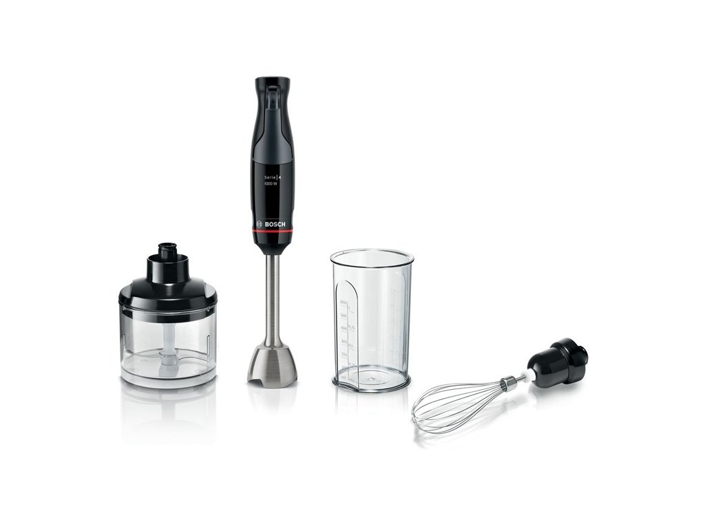 1000 W, vzduch. chlazení motoru, dynamická regulace rychlosti, keramická spojka, nerez mix. noha s QuattroBlade Pro, AntiSplash, sekáček (500 ml), metla na sníh, mix. nádoba s měrkou, černáDoplňkové parametry