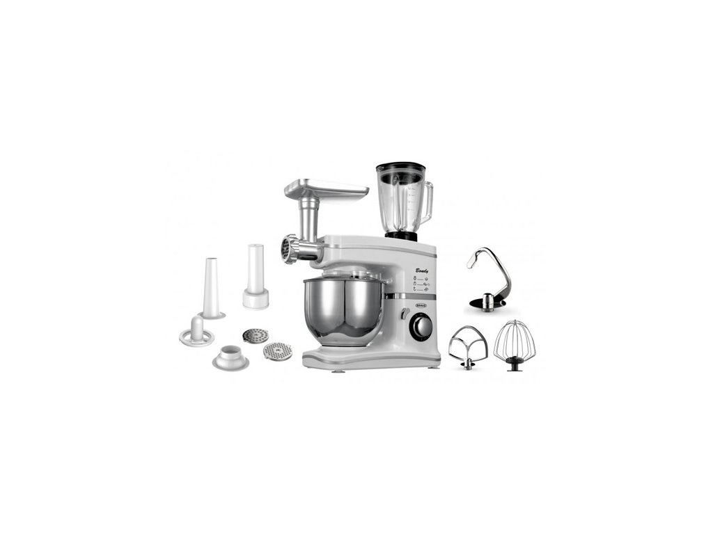 multifunkční robot; kovové převody; kryt mísy; nerezová nádoba o obsahu 3,5 l; skleněná nádoba mixéru 1,5 l; šlehací metla, hnětací háky, mlýnek na maso, mixovací nádoba součástí; možnost dokoupit: struhadla, nástavec na italské těstoviny, nástavec na pastu, nástavec na jemné strouhání; příkon 1200Doplňkové parametry