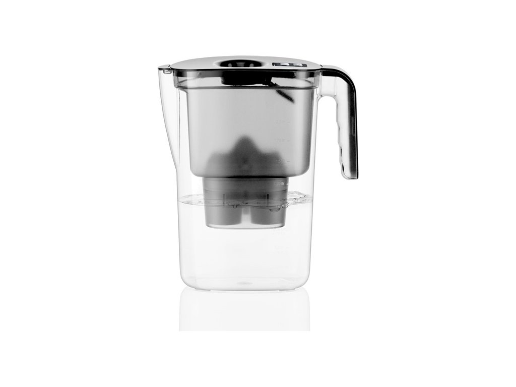 legantní černá filtrační konvice BWT VIDA o objemu 2.6 litru s mechanickým ukazatelem výměny filtru. Balení obsahuje jeden filtr, který obohacuje vodu o ionty zdraví prospěšný hořčíkDoplňkové parametry