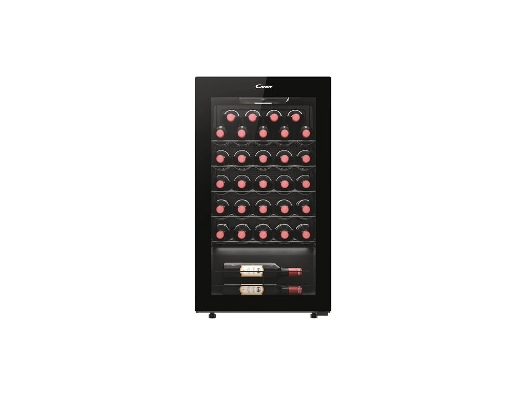 volně stojící vinotéka; en. třída G; objem 90 l; kapacita 33 lahví; hlučnost 37 dB(A); klimatická třída N - ST; jednozónové chlazení 5–20 °C; mechanické ovládání; antivibrační systém; automatické odmrazování; 5 kovových polic; LED osvětlení; kouřové sklo s UV ochranou; 85 × 47,5 × 45,6 cmDoplňkové parametry
