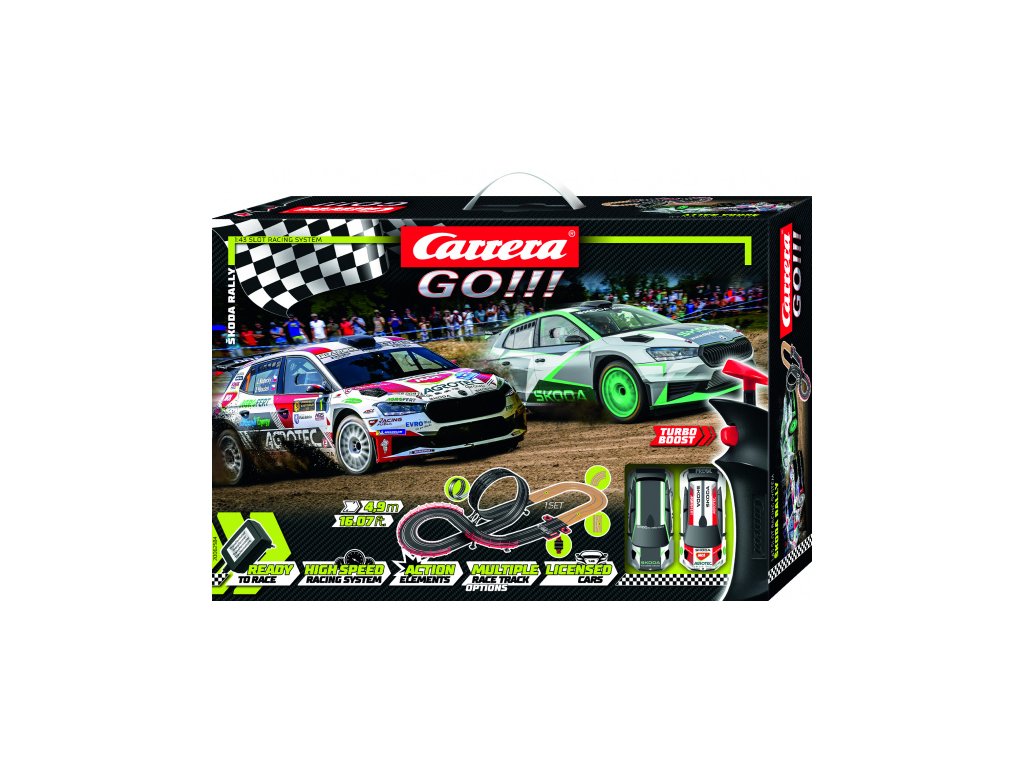 Autodráha Carrera GO!!! dlouhá 4,9m s auty Škoda FABIA RS 2 obsahuje looping, zúžení dráhy, přemostění, rally dráhu, rovinky, zatáčky, díl s počítadlem kol a další díly. Můžete si sestavit další různé trati podle své fantazie.Doplňkové parametry