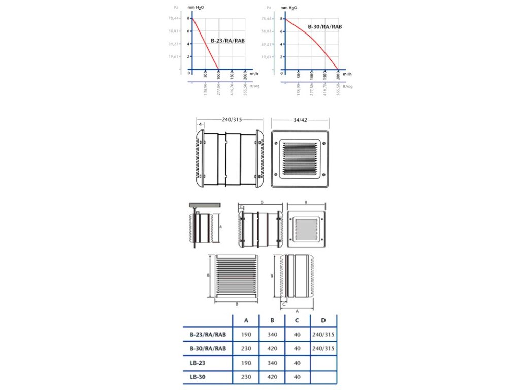 Ventilační jednotka na zeď či do okna, pr. 305 mm, 1900 m³/h (odtah) / 700 m³/h (sání), 51 dB(A), IPX4, elektricky ovládaná žaluzie Ventilátor pro restaurace, bary, spol. prostoryDoplňkové parametry