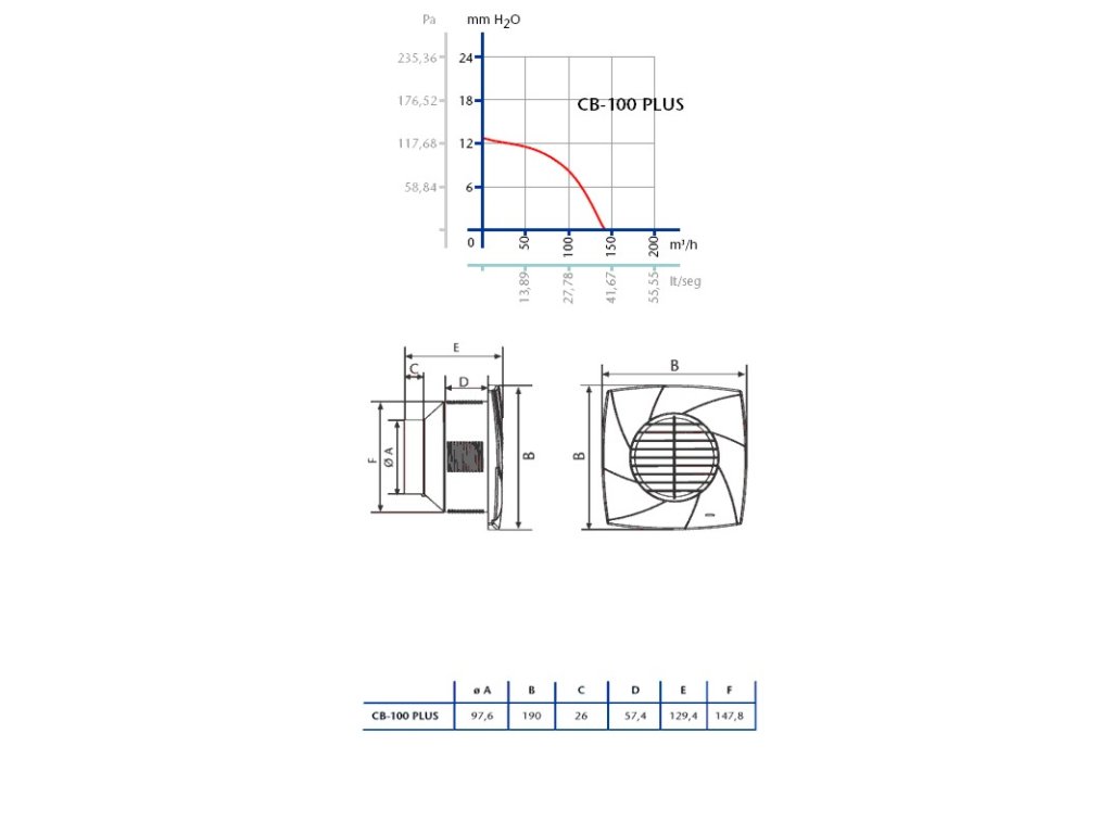 Radiální ventilátor na zeď či do stropu, pr. 100 mm, 130 m³/h, 49 dB(A), 13 mmH2O (127 Pa), IPX4, nízký! Pro odtah až 13 m Vestavné provedení s nízkou nasávací mřížkou Integrovaná zpětná klapka Antivibrační podložkaDoplňkové parametry