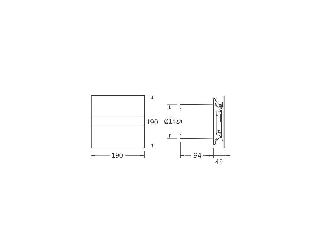 Průměr odtahu: 150 mm, Barva: Bílá - skleněný čelní panel, Příkon motoru: 19 W, Otáček/min.: 2200, Max. sací výkon: 350 m³/hod, Max. tlak: 60 Pa, Max. délka odtahu: 6 m, Hlučnost - 2 m: 35 dB(A), Stupeň krytí: IP44, Montážní poloha: Na zeď i do stropu, Motor s kuličkovými ložisky