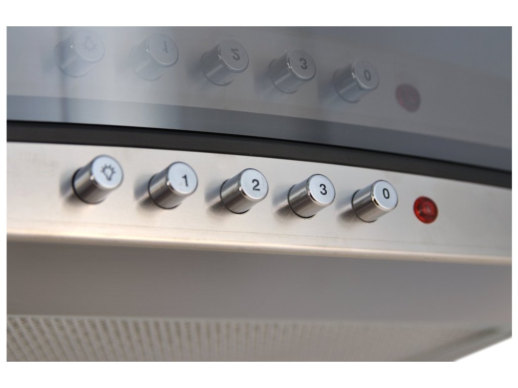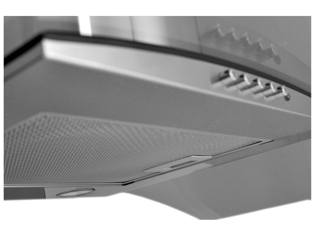 Komínová digestoř ke zdi, šíře 90 cm, nerez / tónované sklo, max. výkon 421 m³/h (5 Pa), hlučnost Lw 46 – 68 dB(A), 3 rychlosti, odsávací jednotky mají individuálně vyvažovanou turbínu, motory jsou opatřené vratnými tepelnými pojistkami (při přetížení motoru vypne, po jeho vychladnutí opět sepne), mechanické tlačítkové ovládání, kovové sendvičové tukové filtry, které lze mýt v myčce, možnost práce v odtahovém i recirkulačním režimu, výstupní průměr 150 mm, Výbava: úsporné LED osvětlení 2 × 2 W, zdarma redukce na 120 mm a zpětná klapkaDoplňkové parametry