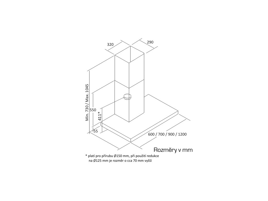 Komínová ke zdi, 600 mm, nerez, ovládání VL3 s modře prosvětlenými tlačítky, 1 motor BT2 240 W, 3 rychlosti, 780 m3/h (5 Pa), max. hlučnost Lw 67 dB(A), max. tlak 405 Pa, 15 min. časovač, LED světla