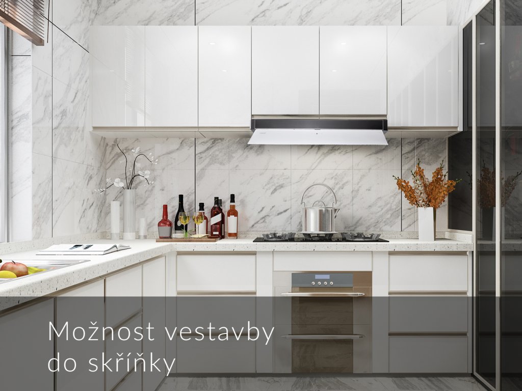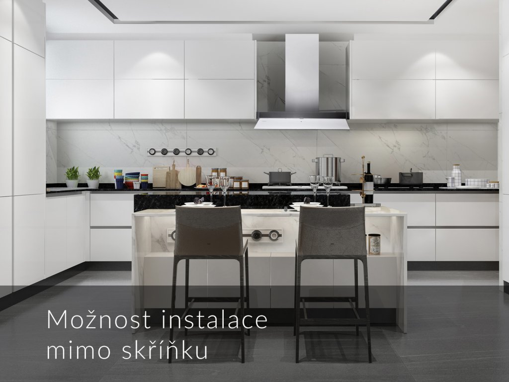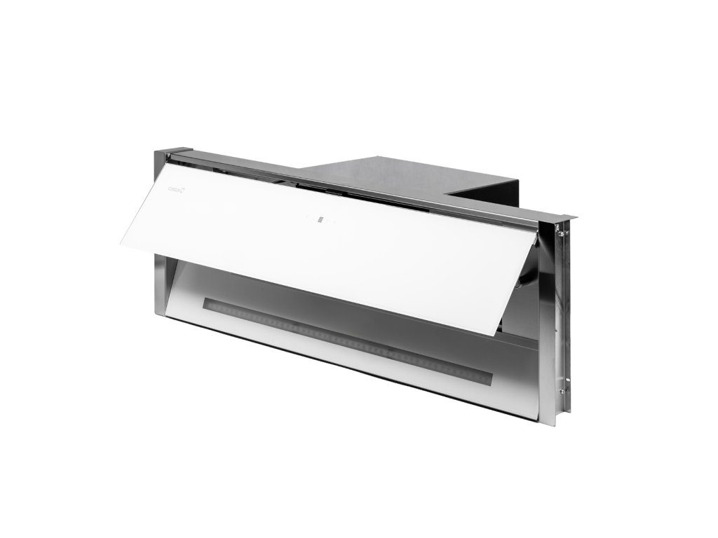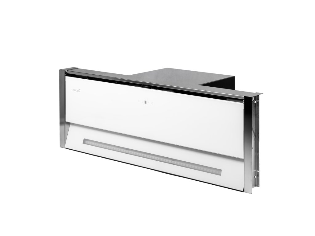Bezkartáčový (brushless) motor CATA BT4DC je konstruovaný tak, aby eliminoval v maximální míře vnitřní tření (tím, že neobsahuje uhlíkové kartáče) a tak dosahoval maximálních výkonů při nízké hlučnosti a nízké spotřebě elektrické energie. Zároveň tím, že nepoužívá uhlíkové kartáče a ty tak není potřeba pravidelně měnit, zvyšuje se životnost motoru a tím i celé digestoře. Neviditelná vestavná digestoř, 900 mm, nerez / bílé sklo, elektronické dotykové ovládání, 1 motor BT4DC, 5 rychlosti + TURBO, max. výkon 765 m³/h (5 Pa), hlučnost Lw 46 – 67 dB(A), max. tlak 357 Pa, kovové sendvičové tukové filtry, které lze mýt v myčce, výstupní průměr 150 mm, možnost práce v odtahovém i recirkulačním režimu, snadná montáž, Výbava: úsporné LED osvětlení 1 × 7 W LED pásek s nastavitelnou intenzitou i volitelnými 2 tóny světla , výklopné skleněné stínítko pro zvětšení plochy odsávání a pro ochranu dvířek skříňky. Recirkulační režim u vestavných digestoří: Digestoř se osadí uhlíkovým pachovým filtrem. Přefiltrovaný vzduch se z digestoře odvádí obdobně jako u odtahového režimu trubkou, která prochází celou skříňkou. Tato trubka však neústí kolenem do zdi, ale nad skříňku, kde ji doporučujeme zakončit mřížkou. Pro výrobu skříňky je směrodatný rozměrový nákres a údaje v něm uvedené. Fotografie digestoří jsou ilustrační.Doplňkové parametry