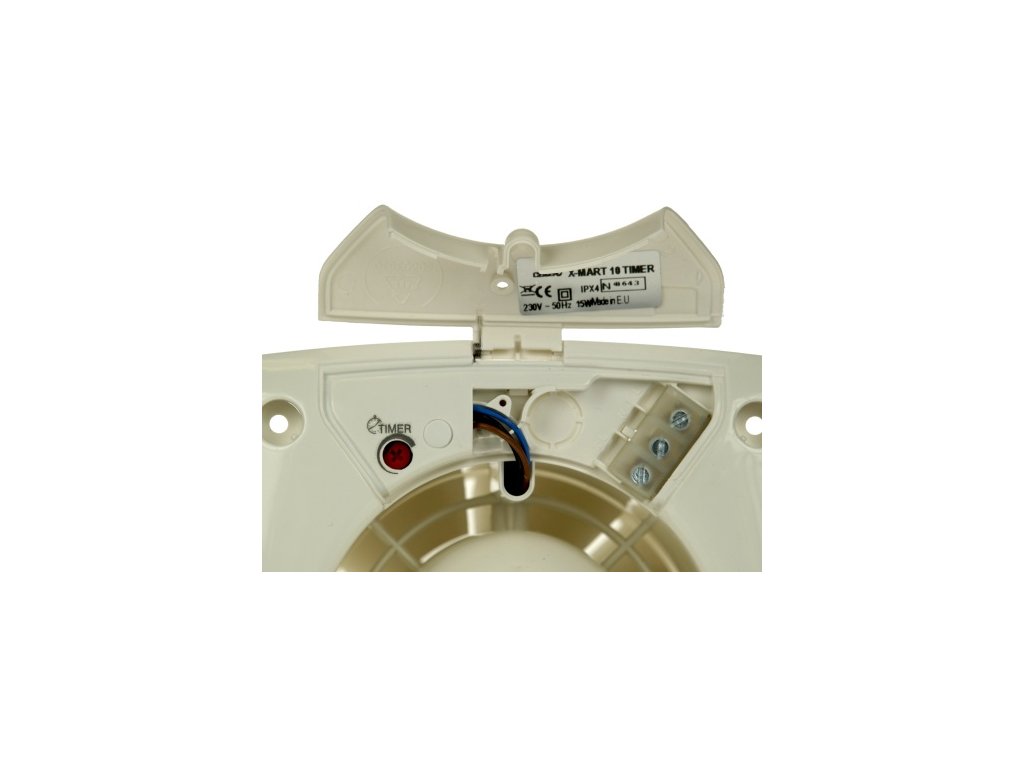 Axiální ventilátor na zeď, do stropu či do okna X-MART, supertichý, super design, snadné čištění, pr. 120 mm, 190 m³/h, 42 dB(A), 5 mmH2O (49 Pa), IPX4, doběhový časovačDoplňkové parametry