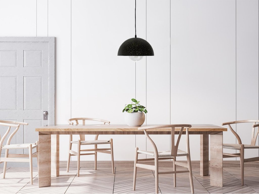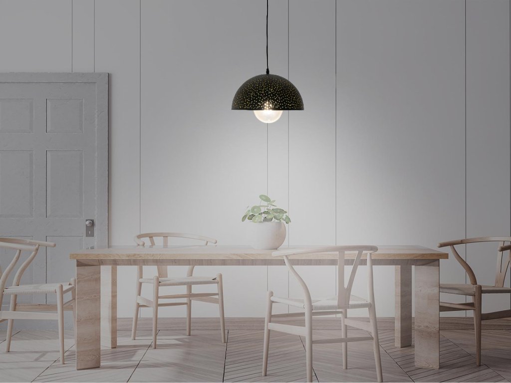 Svítidlo vyzdvihuje eleganci a jednoduché linie, proto se stává dominantou prostoru.