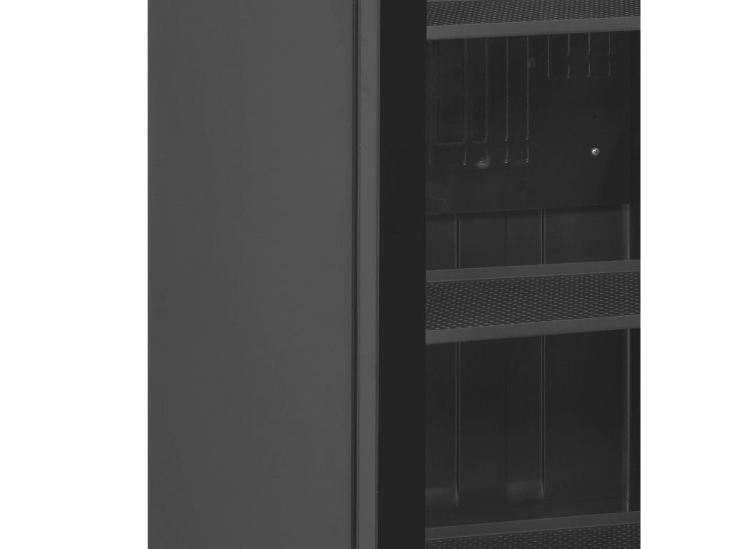 Řada chladicích skříní na nápoje SCU1425 posouvá cenově dostupné chladicí skříně na novou úroveň kvality. Černý exteriér a interiér jim dodávají elegantní nádech. Chladicí skříň má mimořádně vysoké bezrámové prosklené dveře, nastavitelné police a vnitřní osvětlení LED pro optimální prezentaci výrobků. Chladicí systém s ventilátorem zajišťuje rovnoměrné chlazení celé skříně. Standardně se dodává s pravými nebo levými křídlovými dveřmi.Doplňkové parametry