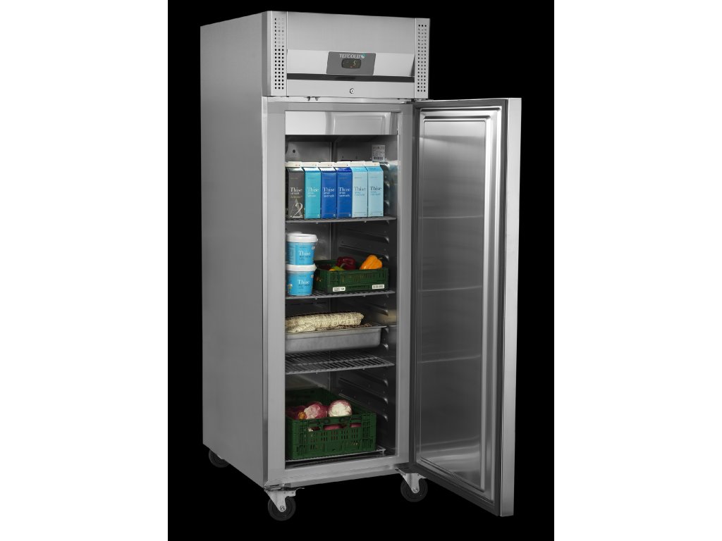 Řada chladicích skříní RK-X s 1 nebo 2 plnými dveřmi je určena pro profesionální kuchyně a má nastavitelné police o rozměrech GN2/1. Chladicí skříň je vyrobena z vysoce kvalitní nerezové oceli SS304 vhodné pro gastronomii a má odolná kolečka pro snadné přemísťování. Chlazení s ventilací zajišťuje čerstvost obsahu a teplotu lze nastavit na digitálním termostatu. Funkce Bluetooth umožňuje snadné monitorování prostřednictvím aplikace.Doplňkové parametry
