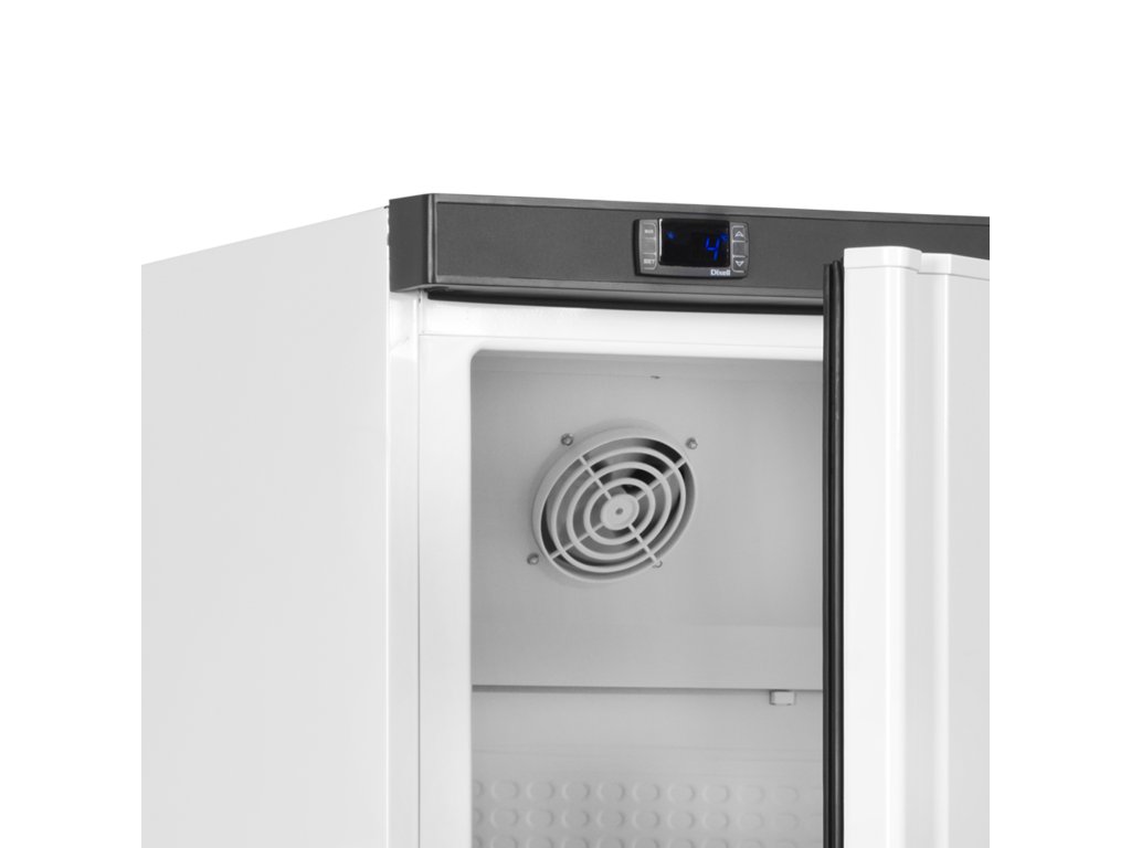 Řada chladicích skříní UR-G je bílá verze našich skříní UR s prosklenými dveřmi. Tyto chladicí skříně se dodávají v různých velikostech a nabízejí skvělou viditelnost výrobků, otevírání dveří lze změnit. Chladničky mají nastavitelné police, takže si je můžete snadno přizpůsobit svým potřebám. Chlazení s pomocným ventilátorem zajišťuje stabilní teplotu v celé skříni, kterou lze snadno regulovat pomocí elektronického termostatu.Doplňkové parametry