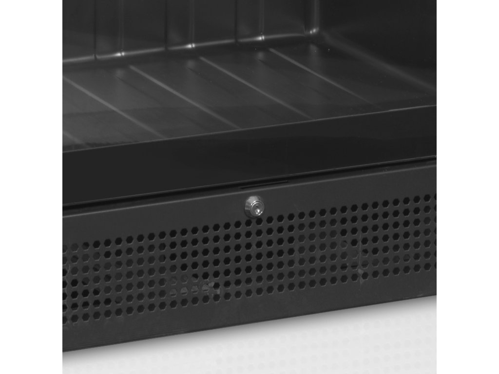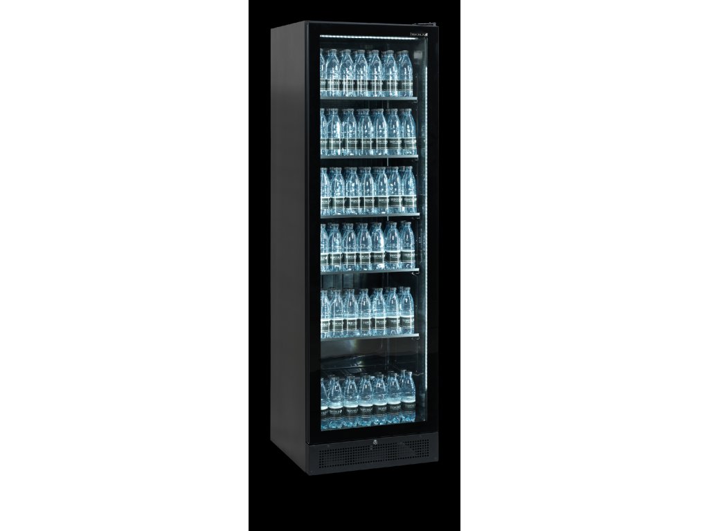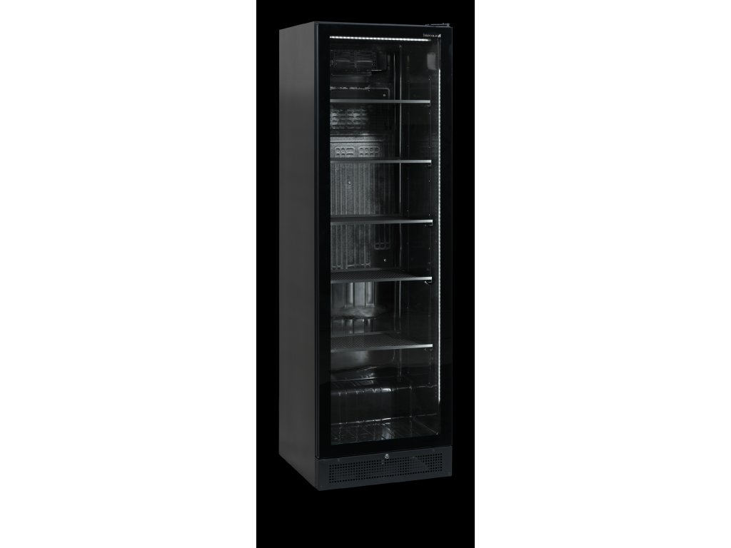Chladicí skříň TEFCOLD SCU1425 posouvá cenově dostupné chladicí skříně na novou úroveň kvality. Černý exteriér a interiér elegantní a v poslední době velice oblíbený. Chladicí skříň má mimořádně vysoké bezrámové prosklené dveře, nastavitelné police a vnitřní LED osvětlení pro poutavou prezentaci vystavených výrobků. Chladicí systém s pomocným ventilátorem zajišťuje rovnoměrné chlazení uvnitř celé skříně. Standardně se dodává s pravými křídlovými dveřmi.Doplňkové parametry