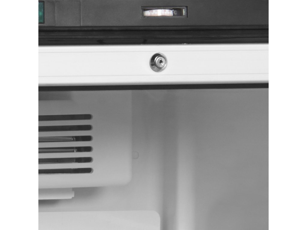 Řada FS jednodveřových chladicích skříní na láhve nabízí vynikající kvalitu provedení za příznivou cenu. Vitrína je bílá se skleněnými dvířky se šedým hliníkovým rámem. Získáte možnost skvělé prezentace produktů v kombinaci s výkonným chladicím systémem s ventilátorem a nastavitelnými policemi umožňujícími flexibilitu.Doplňkové parametry