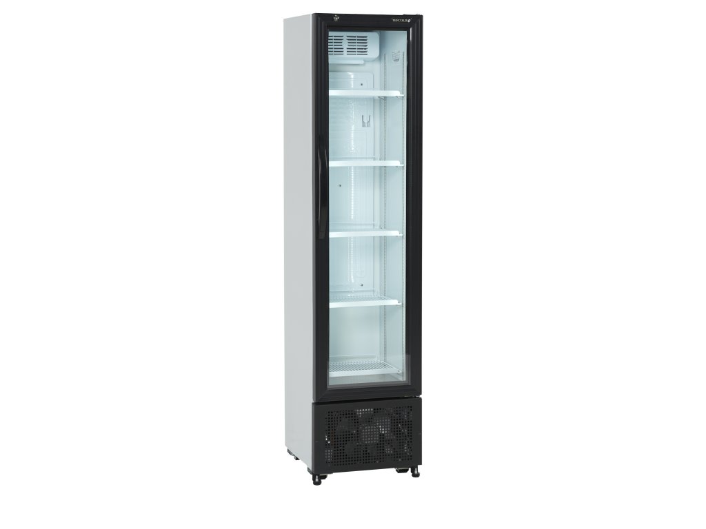 Řada FS Slim nabízí vynikající kvalitu provedení za příznivou cenu. Úzký model má prosklené dveře a je k dispozici v bílé nebo černé barvě. Získáte možnost skvělé prezentace produktů v kombinaci s výkonným chladicím systémem a nastavitelnými policemi umožňujícími flexibilitu.Doplňkové parametry