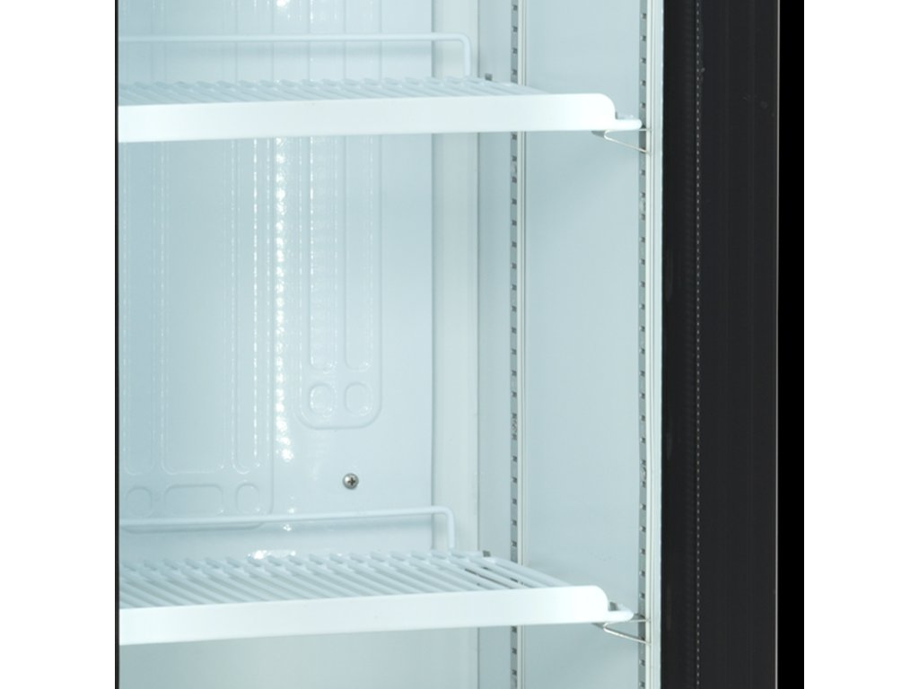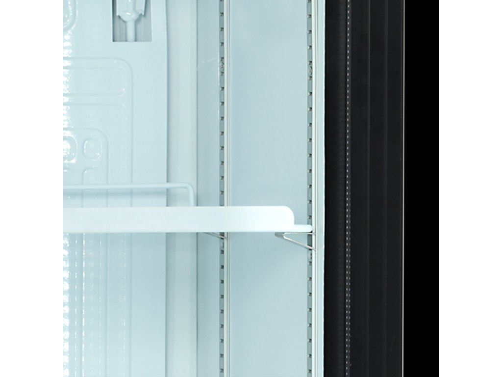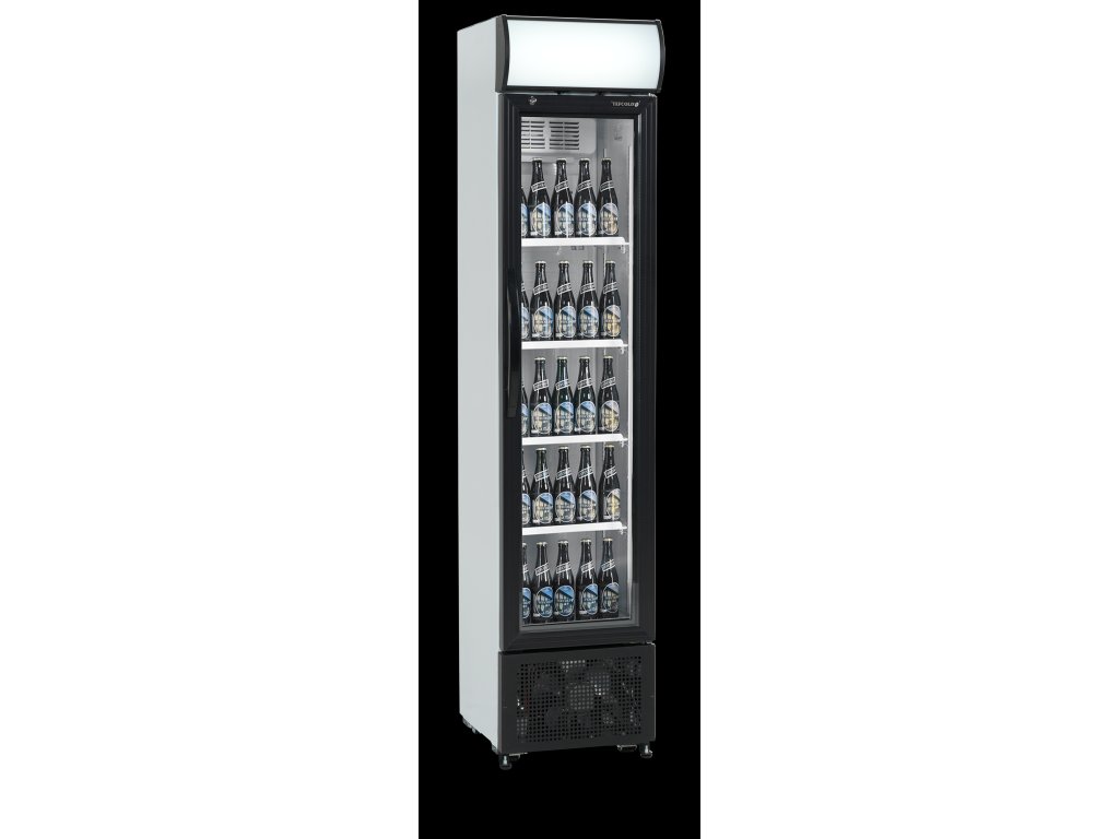 Řada FSC Slim nabízí vynikající kvalitu provedení za příznivou cenu. Úzký model má prosklené dveře a je k dispozici v bílé nebo černé barvě. Získáte možnost skvělé prezentace produktů v kombinaci s výkonným chladicím systémem a nastavitelnými policemi umožňujícími flexibilitu. Chladicí vitrína je ideální pro prezentaci značky a díky osvětlenému reklamnímu panelu v horní části jistě upoutá pozornost zákazníků.Doplňkové parametry