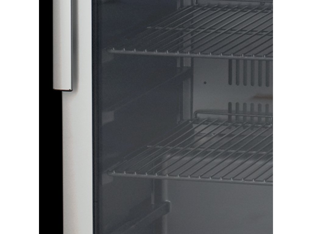 Tato jednodveřová chladicí skříň s prosklenými dveřmi a ventilovaným chlazením je ideální pro prezentaci chlazeného zboží v prodejnách a obchodech. Skříň má tři výškově nastavitelné rošty, takže se snadno přizpůsobí různým velikostem nápojů a typům potravin. Díky proskleným dveřím a ventilovanému chlazení je zajištěna optimální viditelnost a proudění vzduchu, což pomáhá udržovat konstantní teplotu v celé skříni. S černým interiérem a exteriérem je tato skříň moderní a elegantní, což ji činí vhodnou nejen pro gastronomické provozy, ale také pro obchody s potravinami a nápoji.Doplňkové parametry