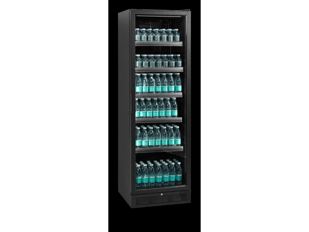Řada chladicích skříní na nápoje SCU1425 posouvá cenově dostupné chladicí skříně na novou úroveň kvality. Černý exteriér a interiér jim dodávají elegantní nádech. Chladicí skříň má mimořádně vysoké oboustranné prosklené dveře s hliníkovým rámem, nastavitelnými policemi a vnitřním LED osvětlením pro optimální prezentaci výrobků. Chladicí systém s ventilátorem zajišťuje rovnoměrné chlazení celé skříně. K dispozici je také model s bezrámovými prosklenými dveřmi.Doplňkové parametry