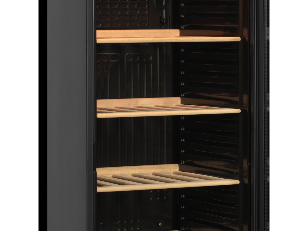 Řada chladniček na víno CPP představuje skvělý a zároveň hospodárný způsob skladování vína. Má černý interiér i exteriér, černé dveře, u kterých lze změnit otevírání, je nutné dokoupit levý pant. Dodává se včetně 6 nastavitelných dřevěných polic na víno. Nabízí automatické odmrazování a systém chlazení s ventilátorem, který se snadno ovládá pomocí elektronického termostatu.Doplňkové parametry