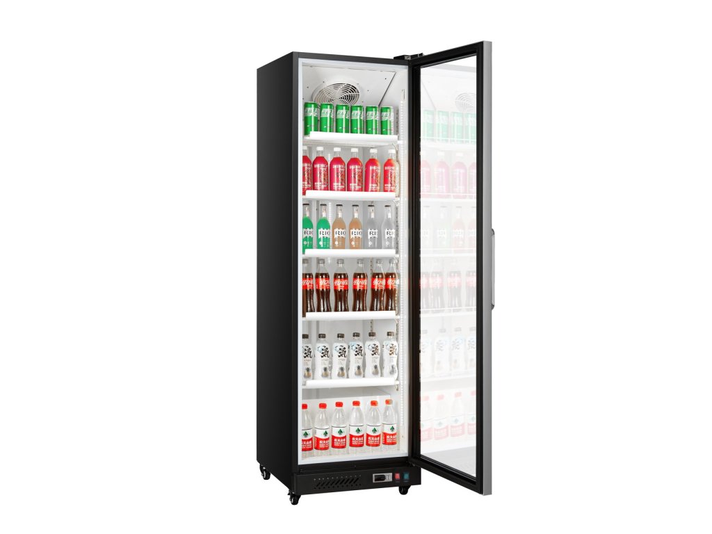 Chladící vitrína Guzzanti GZ 363 Volně stojící moderní chladící vitrína o objemu 363 l a s 5 drátěnými policemi. Profesionální chladící vitrína je ideální pro restaurace, hotely, penziony a malé obchody. Tento model je vhodný pro skladování potravin, nápojů a pro jejich prezentaci. Objem netto 363 l 5x polohovatelné police ventilované chlazení automatické odtávání samozavírací dveře s kompresorem a eko chladivem R 600a bez CFC nastavitelný termostat s rozsahem chlazení už od -1°C do +10°C vnitřní LED osvětlení 4 kolečka pro snadný přesun ideální pro restaurace, hotely, penziony, malé obchody nízká spotřeba 2,29 kWh / 24h energetická třída BDoplňkové parametry