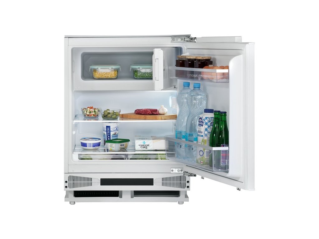 Vestavná lednice s mrazákem; energetická třída E; objem chladničky 95 litrů; objem mrazničky 16 litrů; hlučnost 35 dB; klimatická třída SN/N/T; Invertorový kompresor; stříbrné dekory na policích a přihrádkách; spotřeba energie: 0,403 kWh/den, 147 kWh/rok; 82x59,6x54 cmDoplňkové parametry