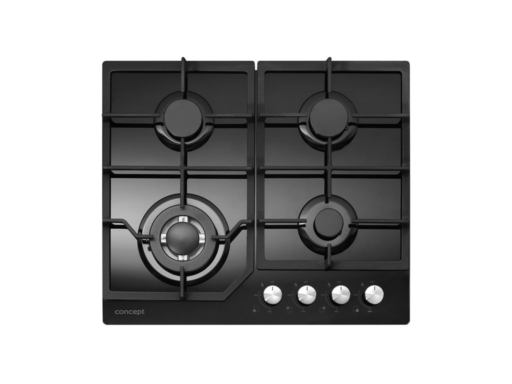 Varná deska - plynová, 4 plotýnky, dětská pojistka, hořák wok, litinové mřížky a pojistka hořáku, kolmé zabroušené hrany, bez rámečku, vestavná, vzhled černé sklo, povrch sklo, připojení ZEMNÍ PLYN a PROPAN-BUTAN, rozměry 11 × 60 × 51 cm (V׊×H)Doplňkové parametry