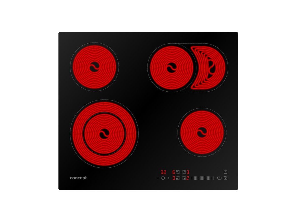 sklokeramická deska, automatické vypnutí; displej; dvojitá zóna; designová linie Žádná; maximální příkon 7200 W; připojení 220/400 V; dotykové ovládání; dotykové ovládání SLIDER; flexi zóna NE; minutka; zpožděné vypnutí; barva černáDoplňkové parametry