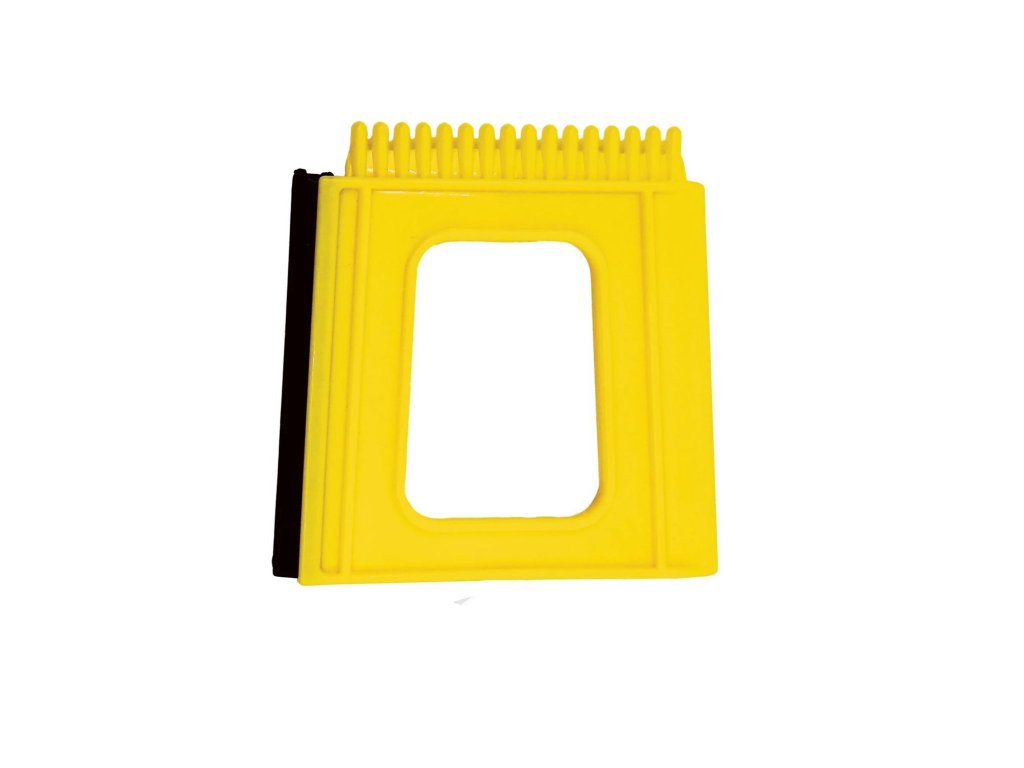 (BAL:1/200/4800ks) Praktická škrabka ve tvaru čtverce, malá a praktická. Praktická při použití. Odolný materiál. Plastová část na odstranění sněhu a ledu. Gumová stěrka na stažení vody nebo orosení.Barva: žlutá.Rozměry: 100 x 100 x 6 mm.Balení: volně.Doplňkové parametry