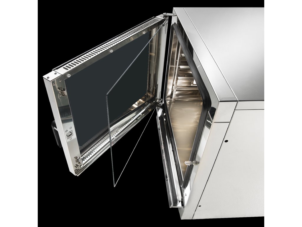 Digitální konvekční (horkovzdušná) pec s přivlhčováním a regulací páry 10 až 100 %. Díky páře nedochází k vysoušení produktů, je zachována jejich šťavnatost. U pečení pečiva má pára vliv na rovnoměrnou strukturu a následně jeho kvalitu. V sérii NORDline Nerone MID je počet roštů (600 x 400 mm) nebo GN 1/1 dán číslem v názvu za "MID". Rošty ani GN nejsou součástí. Pod troubu je možné pořídit také podstavec z nerezové oceli s protiskluzovými nožkami a zásuvy na rošty nebo plechy.Doplňkové parametry